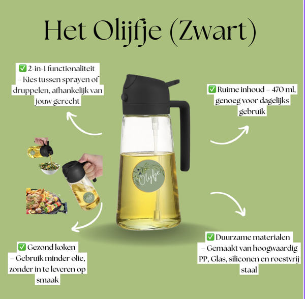 Waarom kiezen voor het Olijfje™ 2-in-1 Oliespray en Schenker?